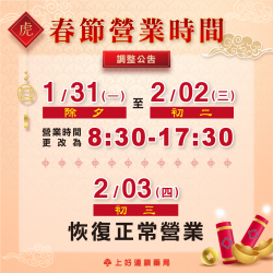 2022春節 門市營業時間公告