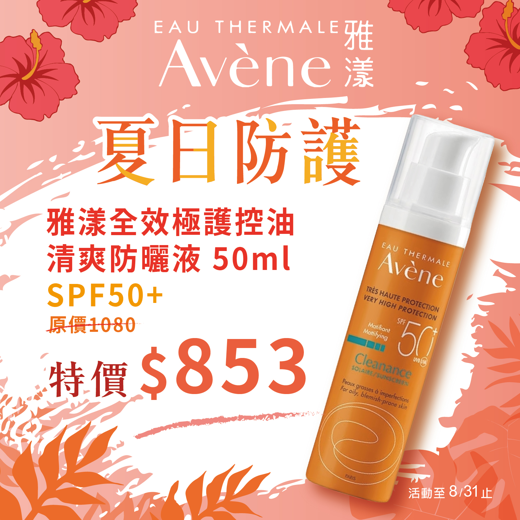 雅漾全效極護控油清爽防曬液SPF50+