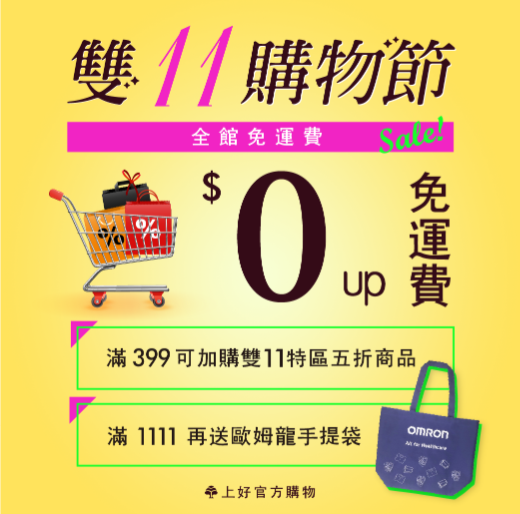 【上好官方購物雙11】 \\\\\11/01~11/30\\\\\ 購物滿 399 五折up超值區加購 訂單滿1111再送歐姆龍手提袋乙個 Line@會員輸入序號【現折50】 全館免運費(全家,萊爾富,OK) 全館免運費(賣家宅配) 折價券領取>>https://line.me/R/ti/p/%40dvl3270s 活動商品送(售)完為止 #不是光棍也優惠 #雙11購物節 #1111 #双十一 #上好藥局 #上好 Read More