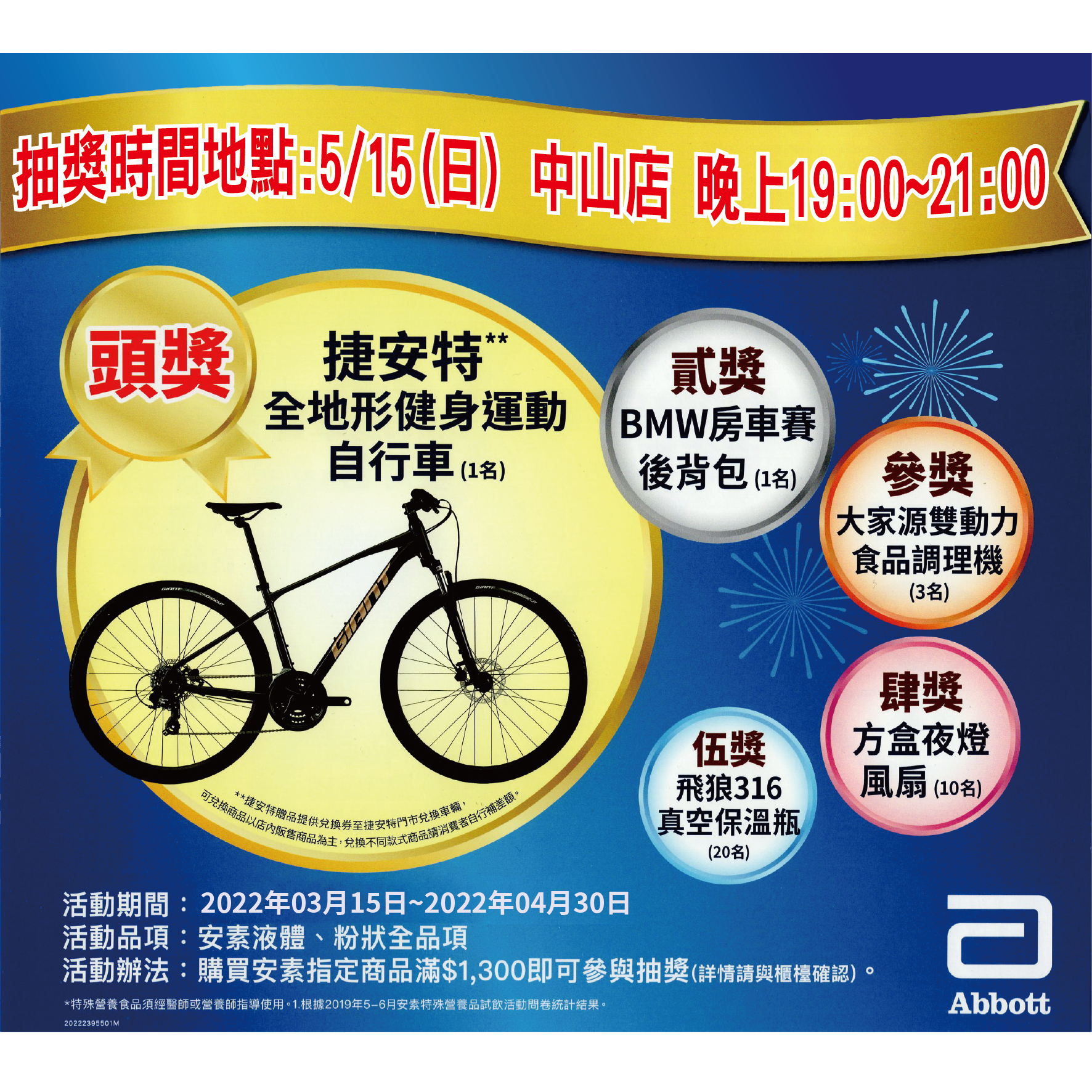 曾在111/3/15~111/4/30期間,購買安素指定商品滿額並填寫抽獎券的顧客。