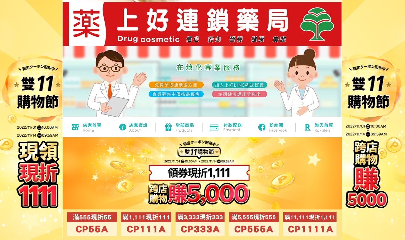 【1101-1114】上好樂天最強雙11下單最高折11,111