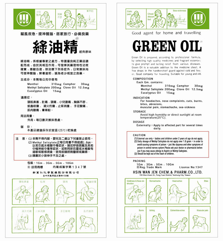 頭眩鼻塞、肚痛、頭痛、小兒腹痛、胸肩不舒、蚊蟲咬傷、湯火灼傷、止癢消腫、手足痠痛、肌肉痠痛、暈船、暈車。