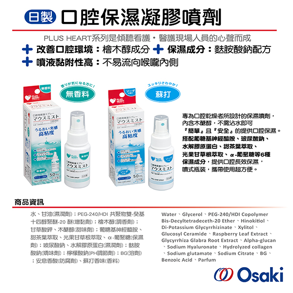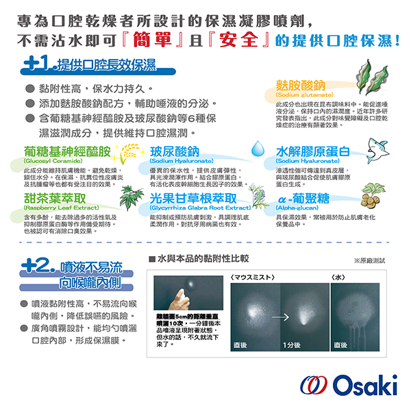 品名:日本【Osaki】口腔保濕凝膠噴劑 無香料/蘇打 50ml/瓶 規格:50ml (無香料/蘇打) ▶️實體店面購入,安心有保障。 ▶️「七天鑑賞期非試用期」,只接受瑕疵品退貨,在意者請勿下單。 ▶️部份商品運送過程中會有凹罐壓痕情形,能接受再下單。 ▶️祝您順心健康。 因實體店面同步販售,下單前請線上諮詢【確認庫存&效期】 線上諮詢