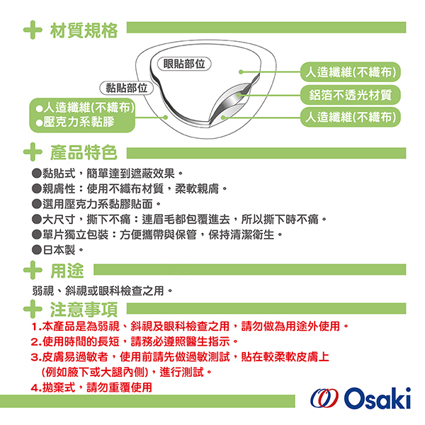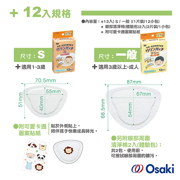 品名:日本【Osaki】遮眼貼(幼兒/兒童) 12入+2入清潔棉/組