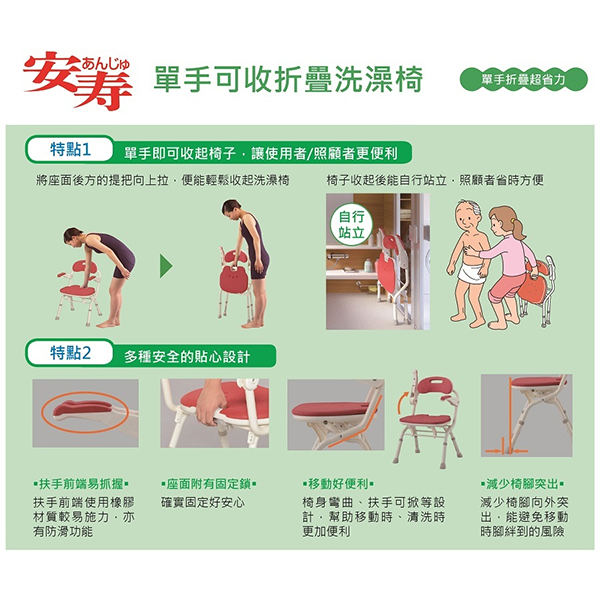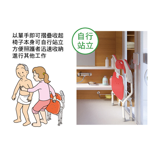 ◆ 單手可收起洗澡椅,讓使用者更便利。