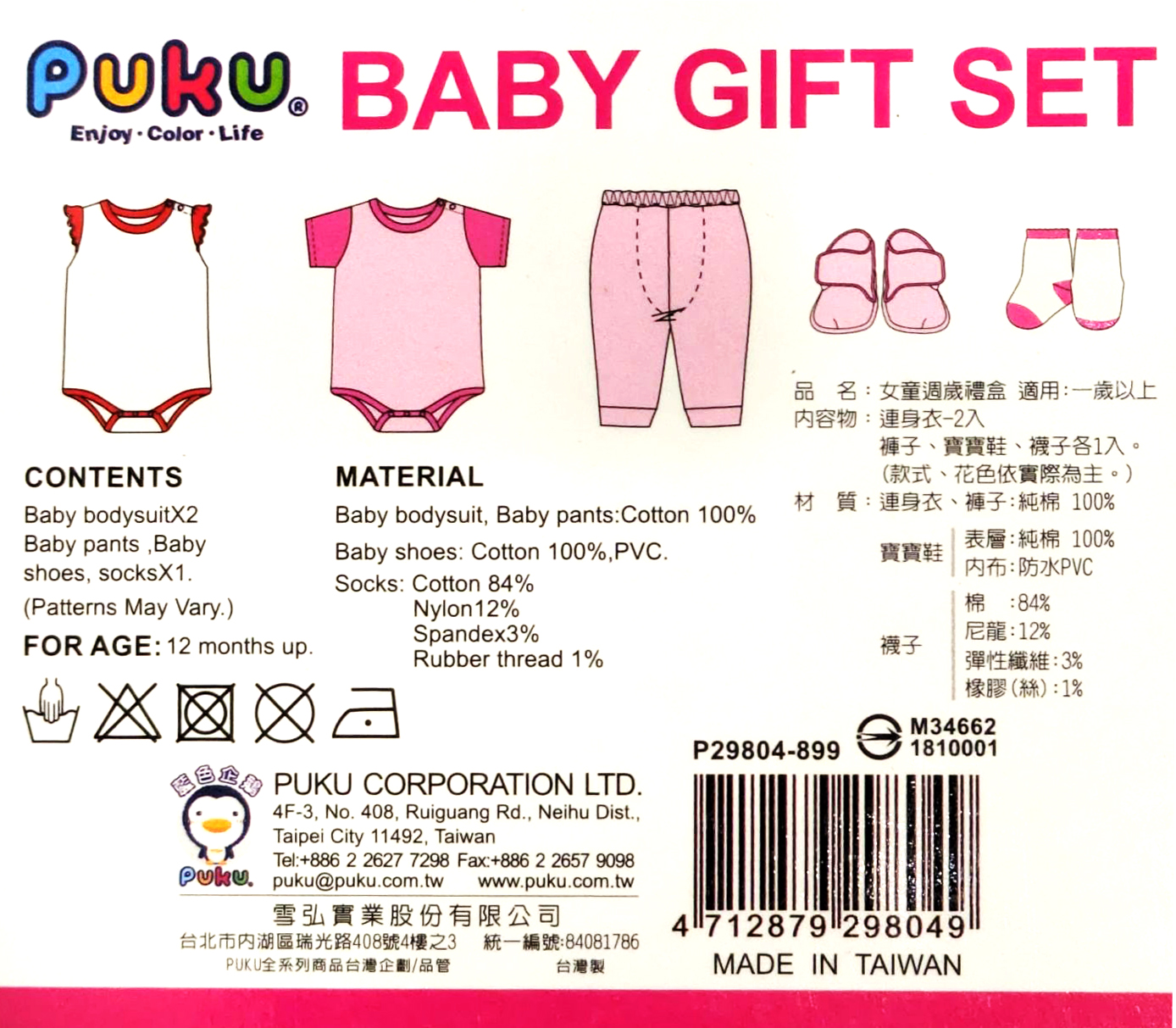 品名:【PUKU】粉色嬰兒周歲禮盒(1歲以上)5件組