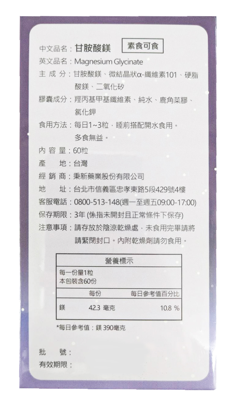 品名:【貝斯特】甘胺酸鎂 60粒/盒 規格:60粒/盒 ▶️實體店面購入,安心有保障。 ▶️「七天鑑賞期非試用期」,只接受瑕疵品退貨,在意者請勿下單。 ▶️部份商品運送過程中會有凹罐壓痕情形,能接受再下單。 ▶️祝您順心健康。 因實體店面同步販售,下單前請線上諮詢【確認庫存&效期】 線上諮詢