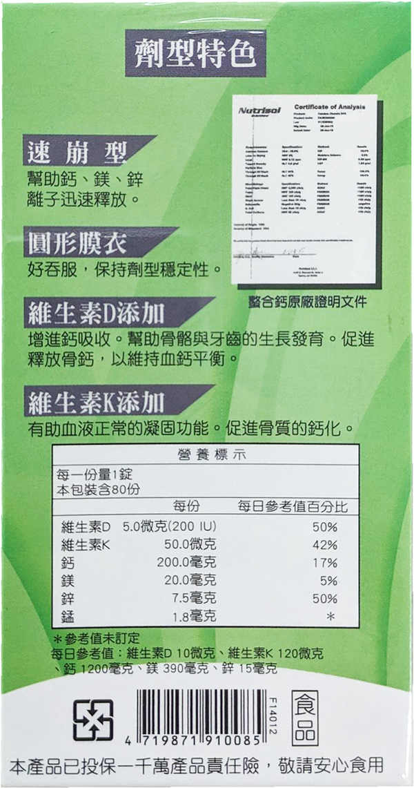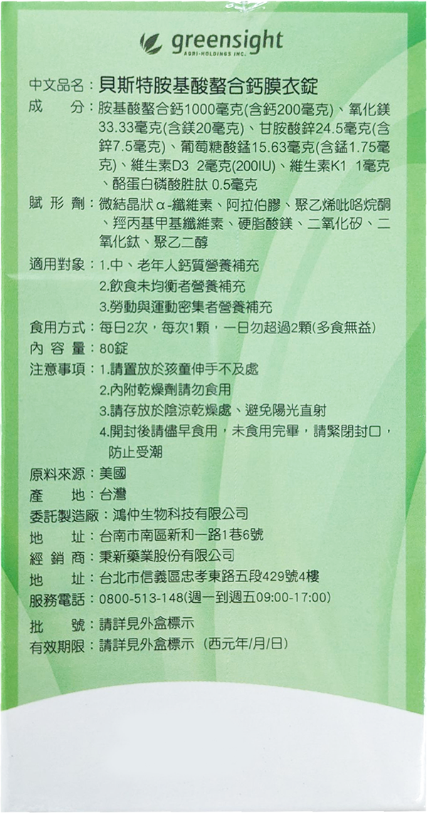 品名:【貝斯特】胺基酸螯合鈣膜衣錠 80錠/盒