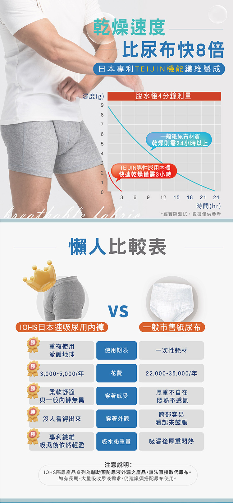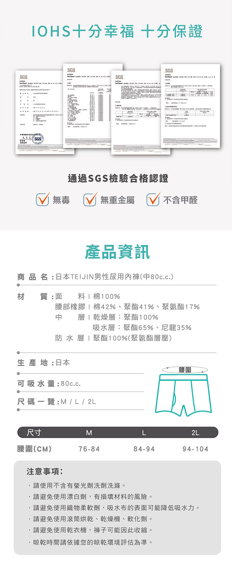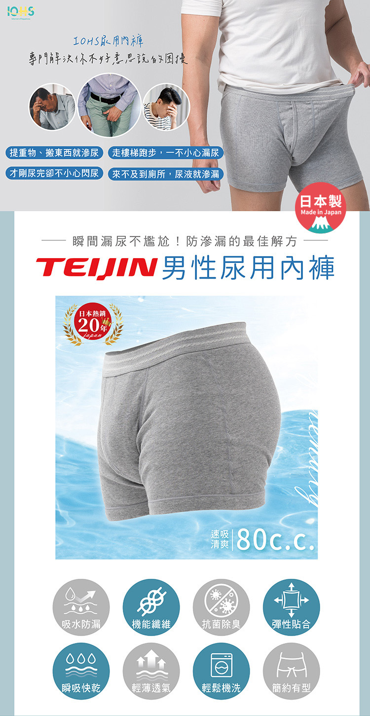 品名:【IOHS 十分幸福】日本TEIJIN男性尿用內褲(中80CC) M/L/2L
