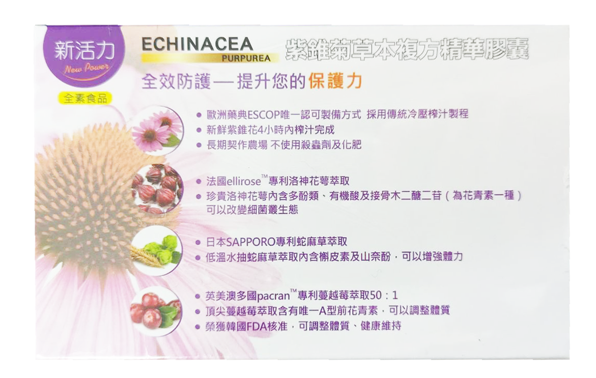 品名:買三送一【新活力】紫錐菊草本複方精華膠囊 30粒/盒 規格:30粒/盒 ▶️實體店面購入,安心有保障。 ▶️「七天鑑賞期非試用期」,只接受瑕疵品退貨,在意者請勿下單。 ▶️部份商品運送過程中會有凹罐壓痕情形,能接受再下單。 ▶️祝您順心健康。 因實體店面同步販售,下單前請線上諮詢【確認庫存&效期】 線上諮詢